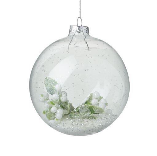 Glass Bauble with snowy leaves