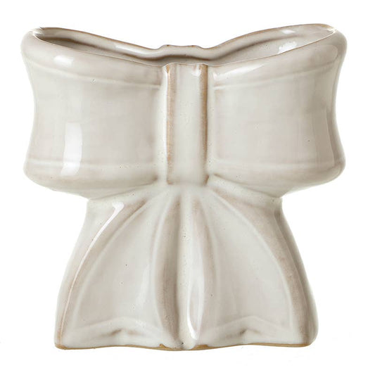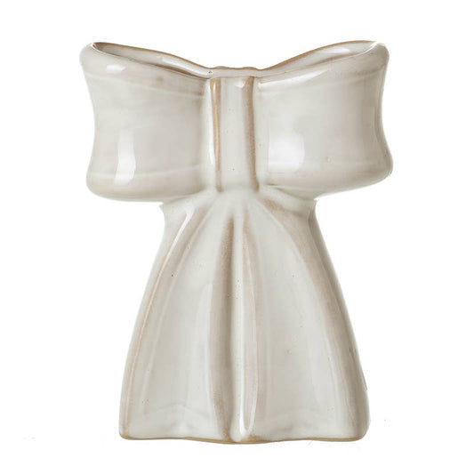 WHITE CERAMIC BOW VASE SML