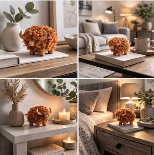Resin Highland Cow With Flower Ornament