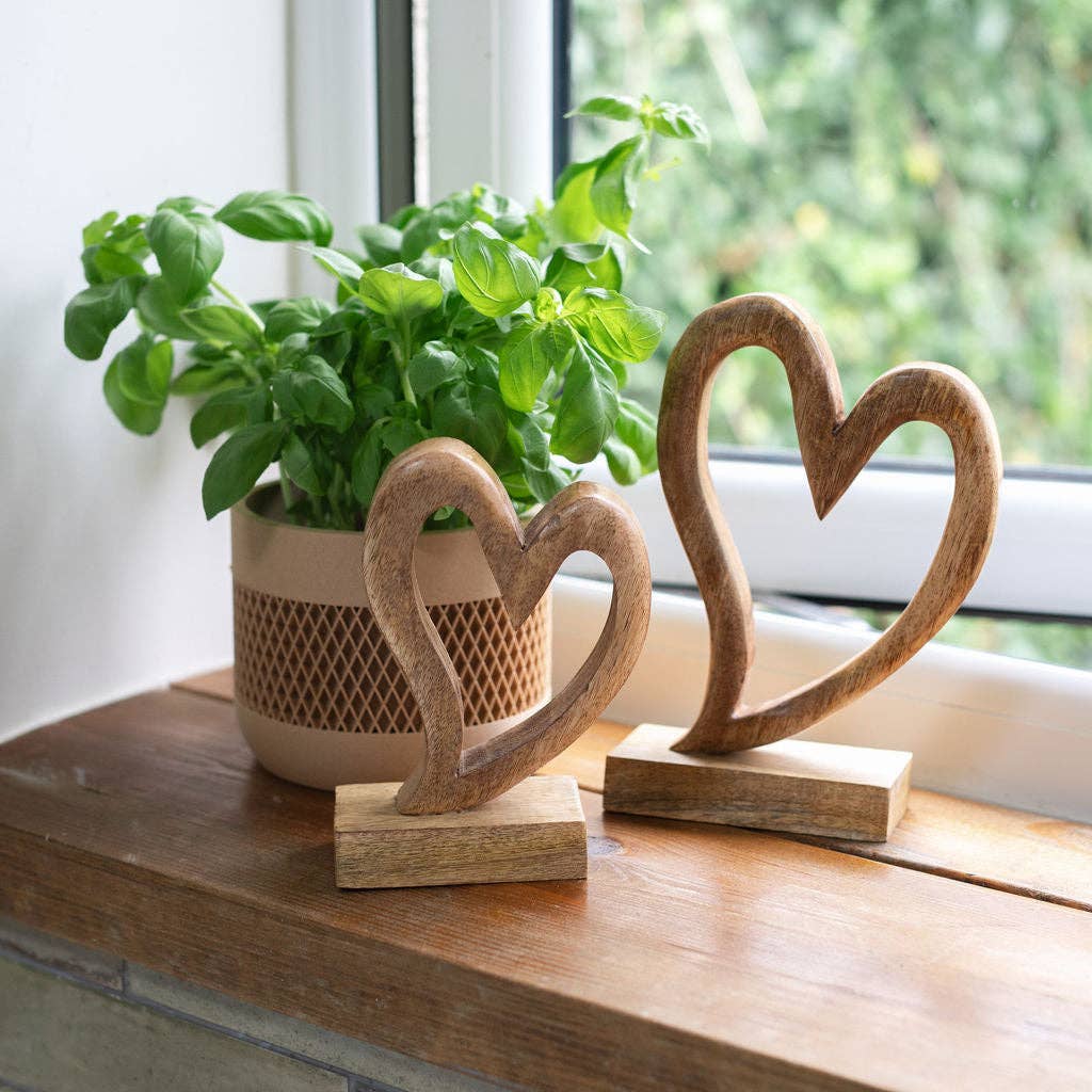 Introducing Avignon, a beautifully crafted wooden heart made from hand-carved mango wood in India. This pretty decorative accessory is the perfect way to add a touch of charm to any space. With its intricate design and expert craftsmanship, it's sure to bring warmth and character to your home. Available in Medium and Large