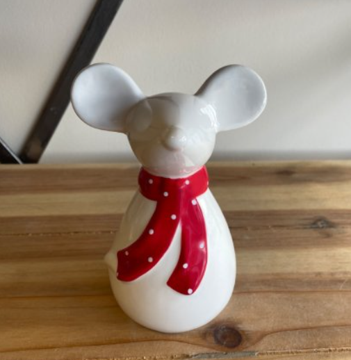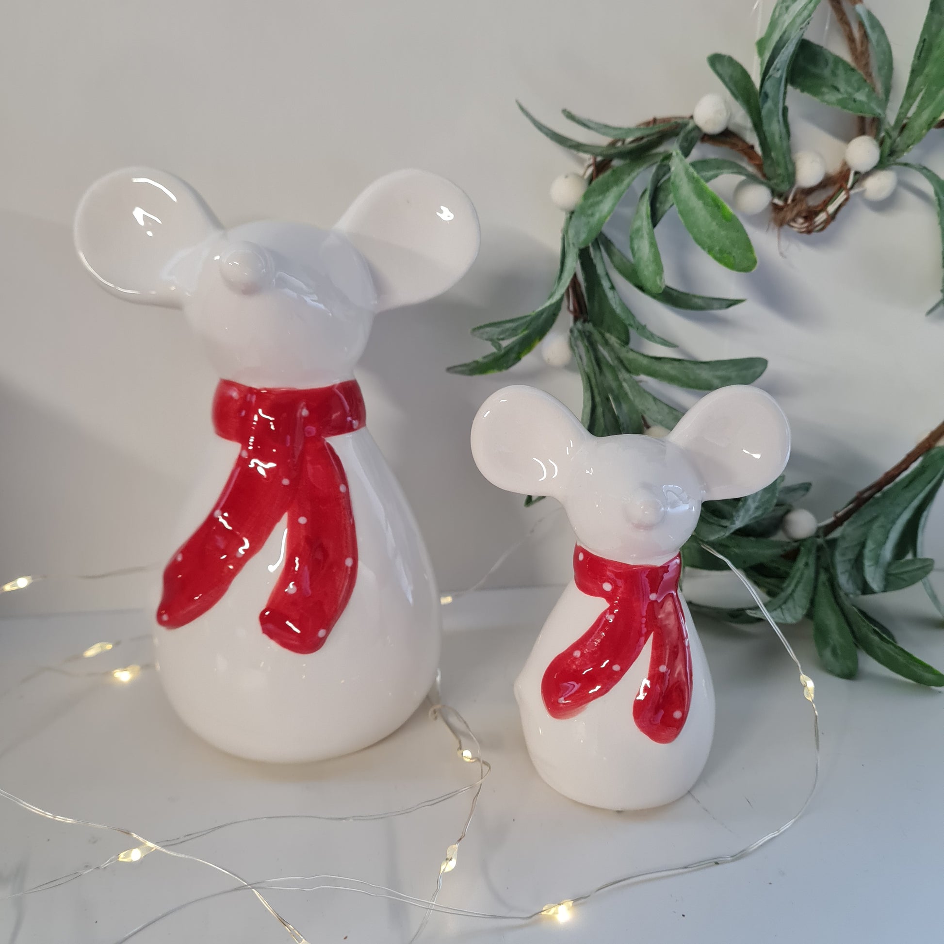 A charming little white ceramic mouse decoration, suitable for any themed home space at Christmas Time