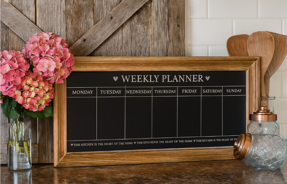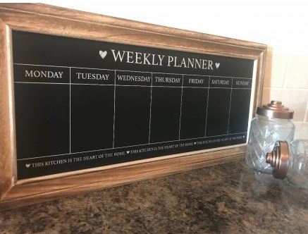 A shabby chic wooden chalkboard weekly planner/menu planner