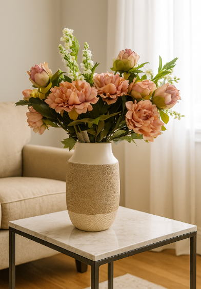Cream bee hive vase with triple textured ceramic, smooth top and raised grid body.