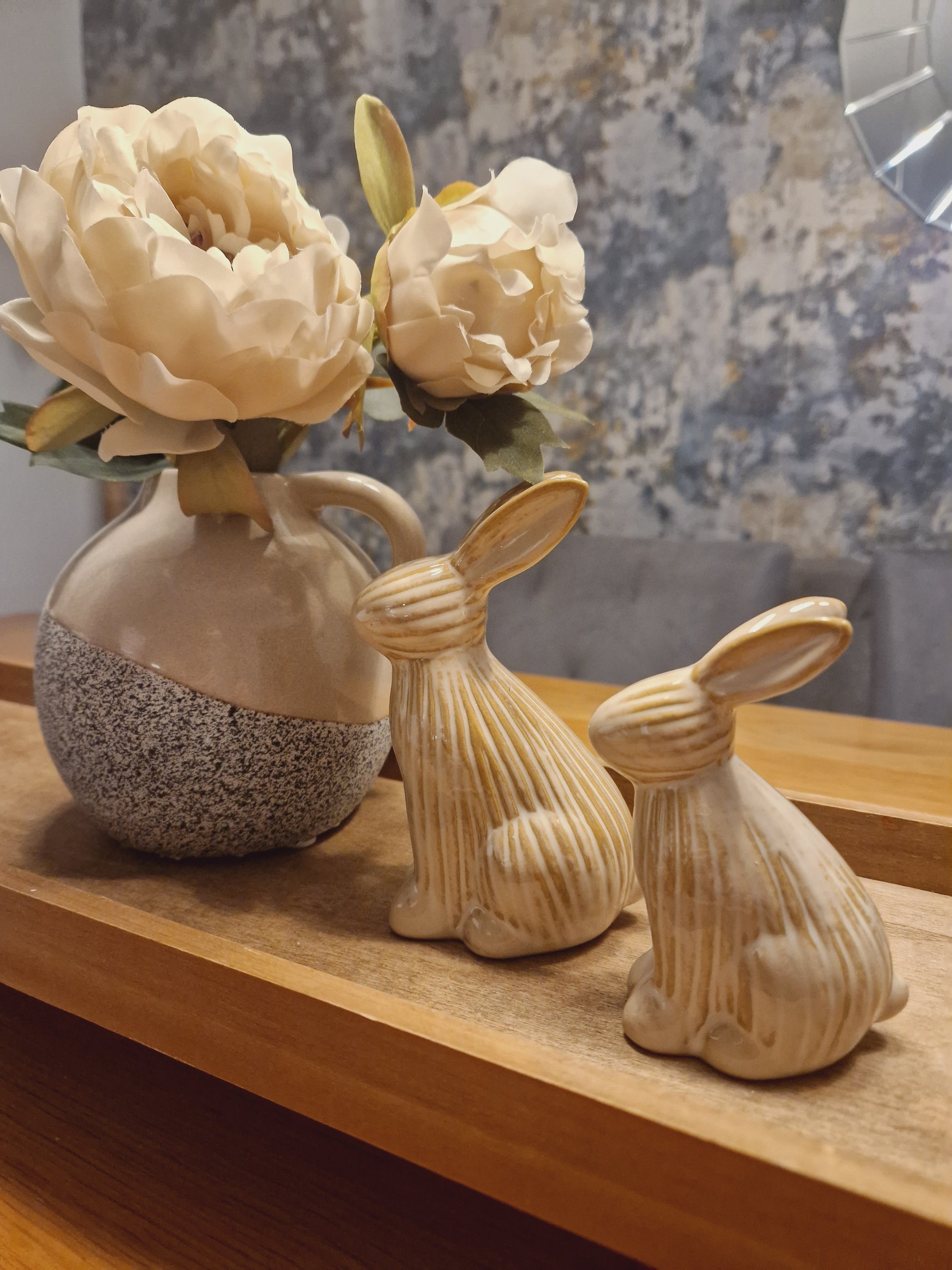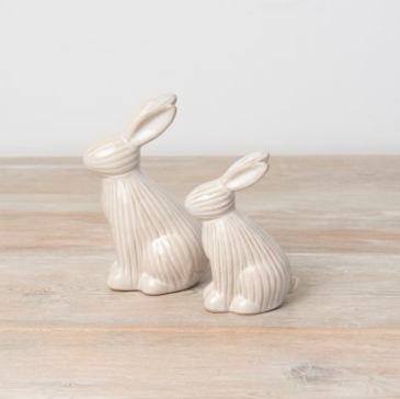 A chic and contemporary bunny ornament with a two tone natural ribbed finish.2 sizes available - 10cm & 13.5cm