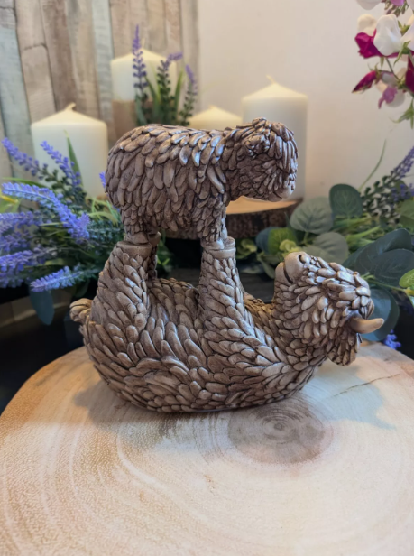 Introducing the charming Hughie Highland Cow & Calf resin ornament, perfect for adding a touch of Scottish countryside to your home decor.