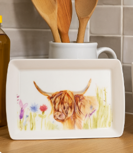 A sweet highland cow tray perfect for putting a small selection of biscuits on.