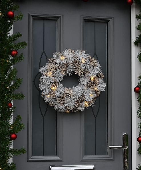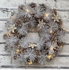 Ice-Blasted Pinecone Wreath with Warm White LED Lights 35cm
