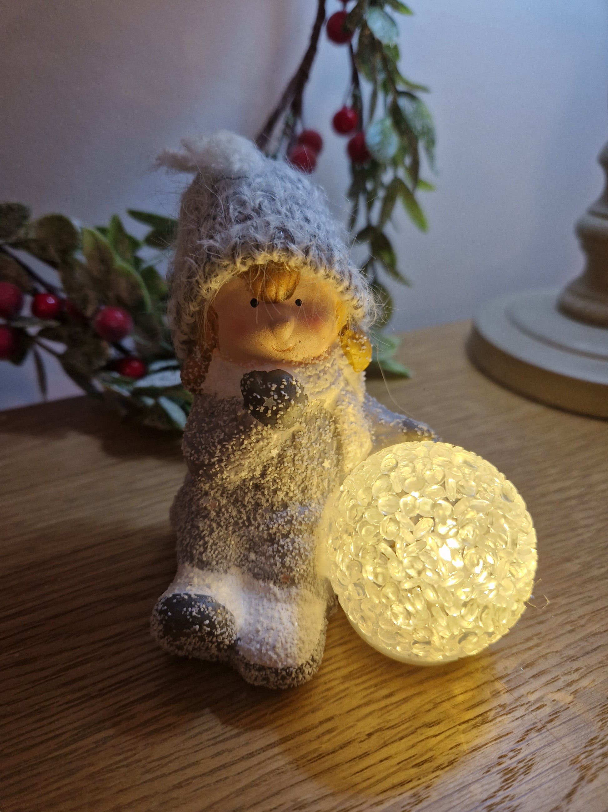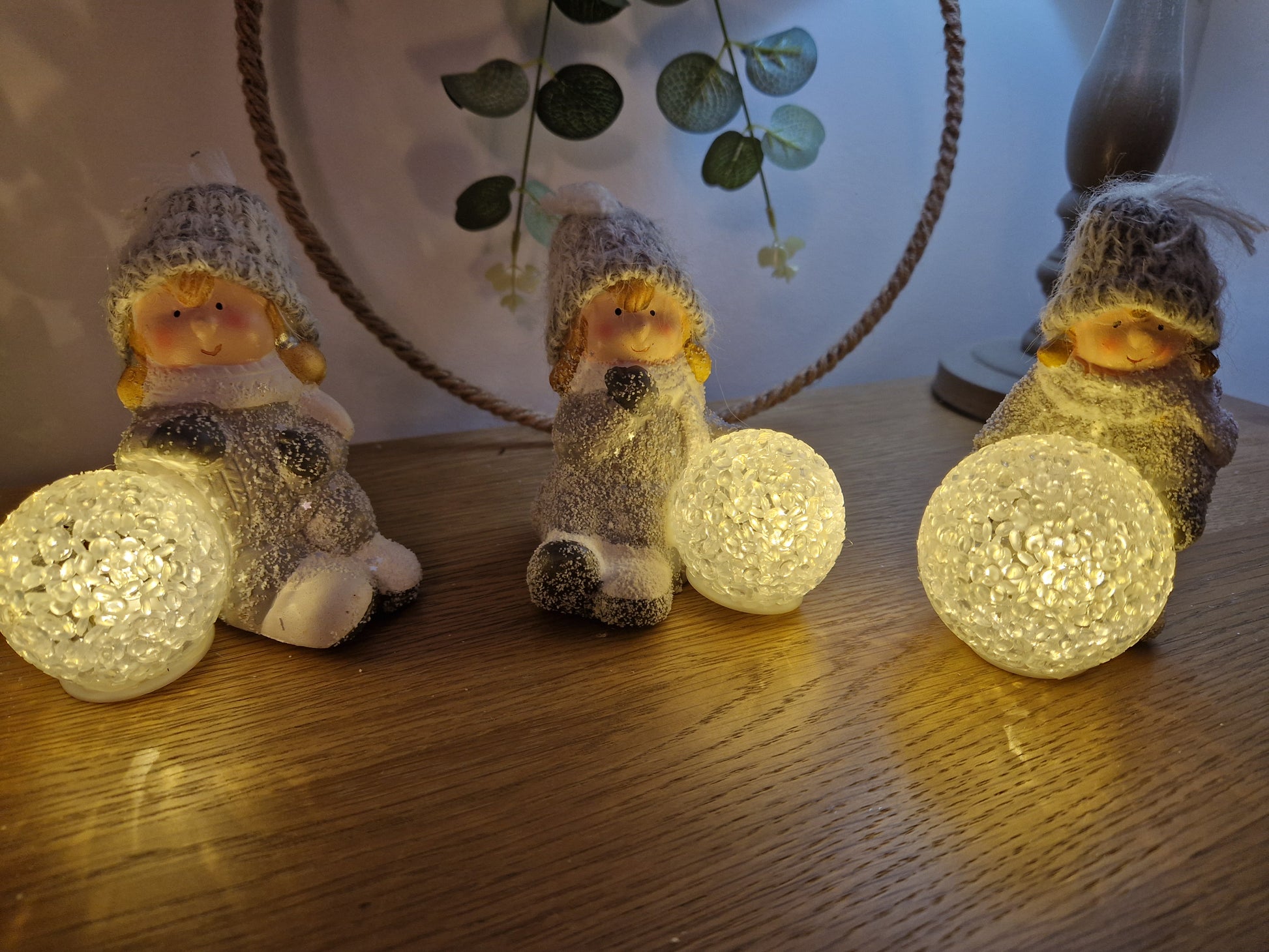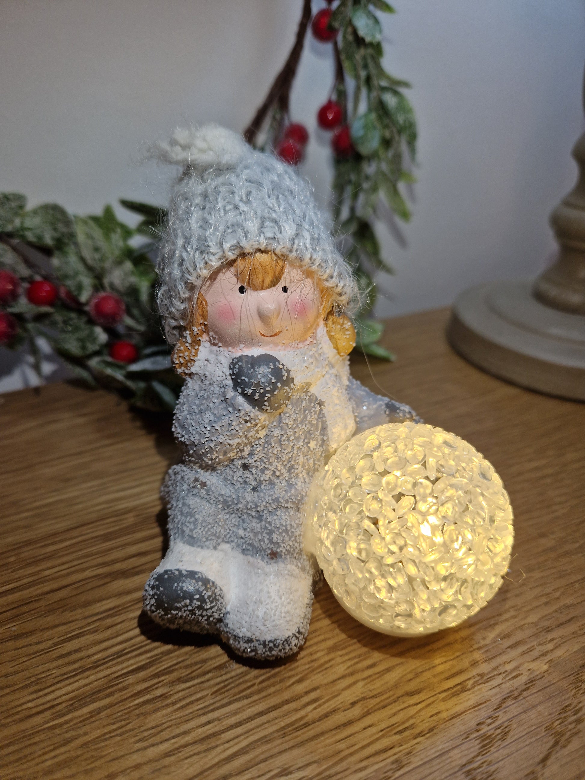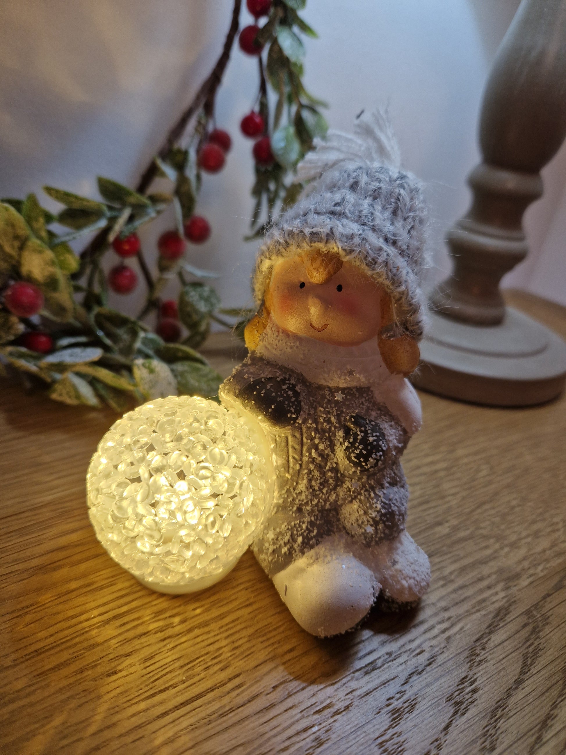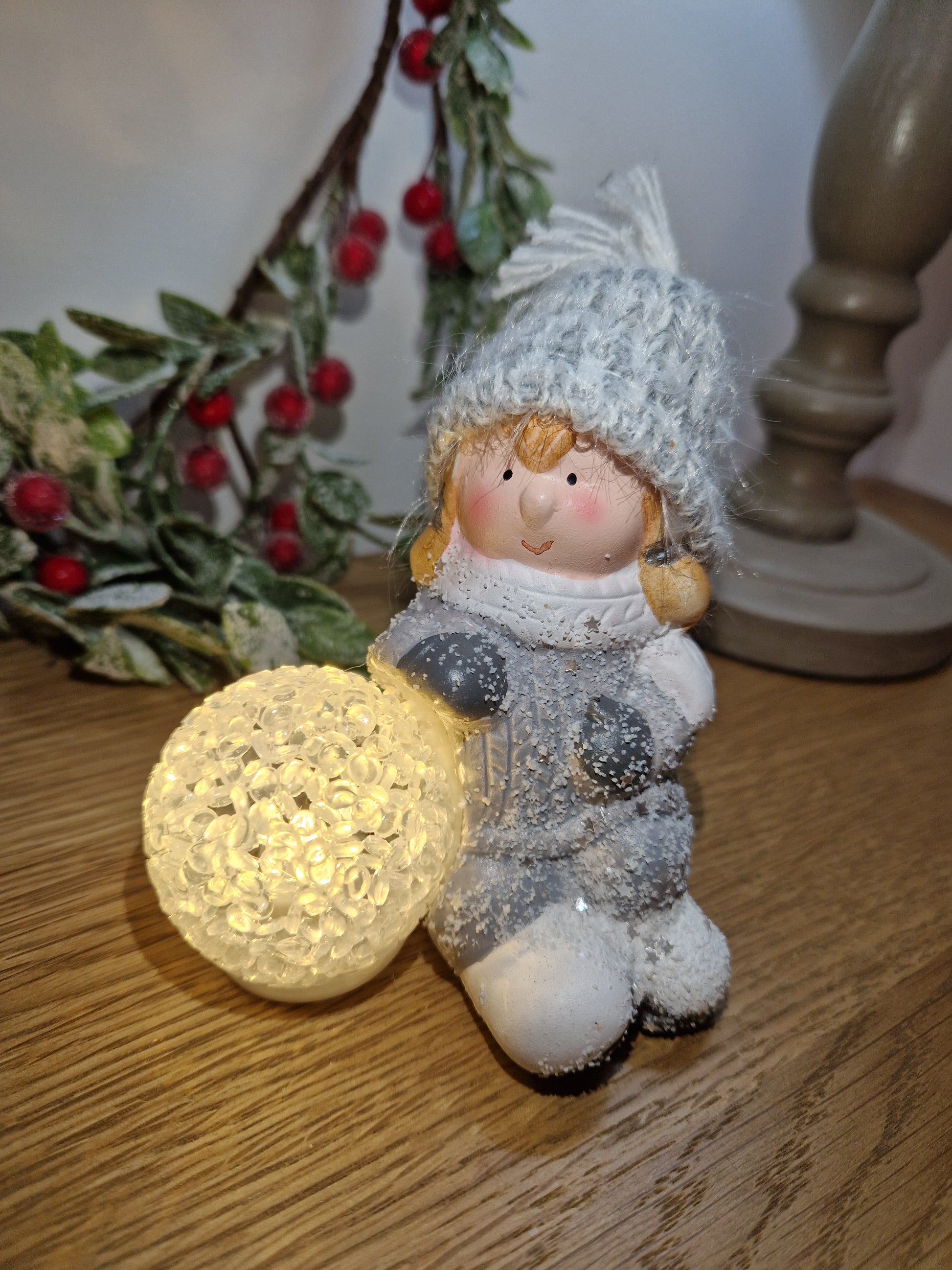 3 designs of a sweet little girl with a light up snowball (batteries included)