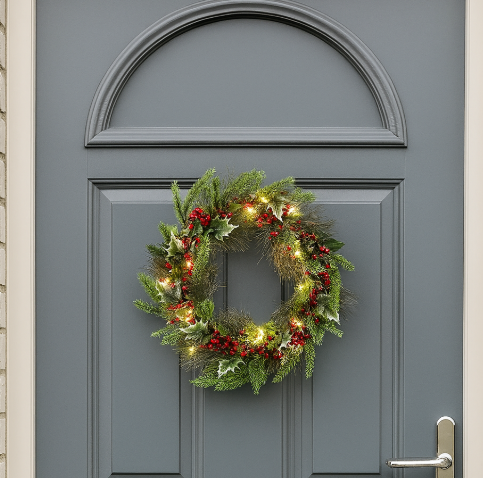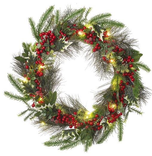 Light Up Berries & Green Wreath, 50cm