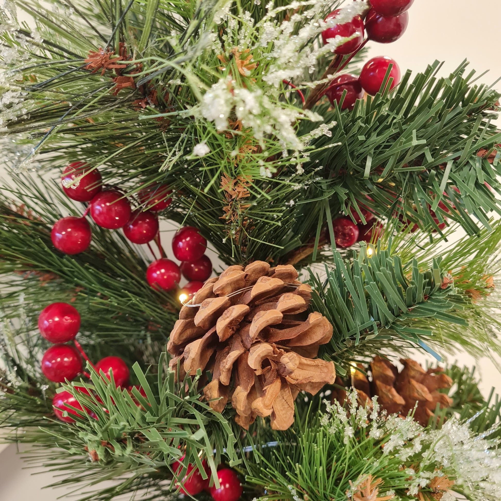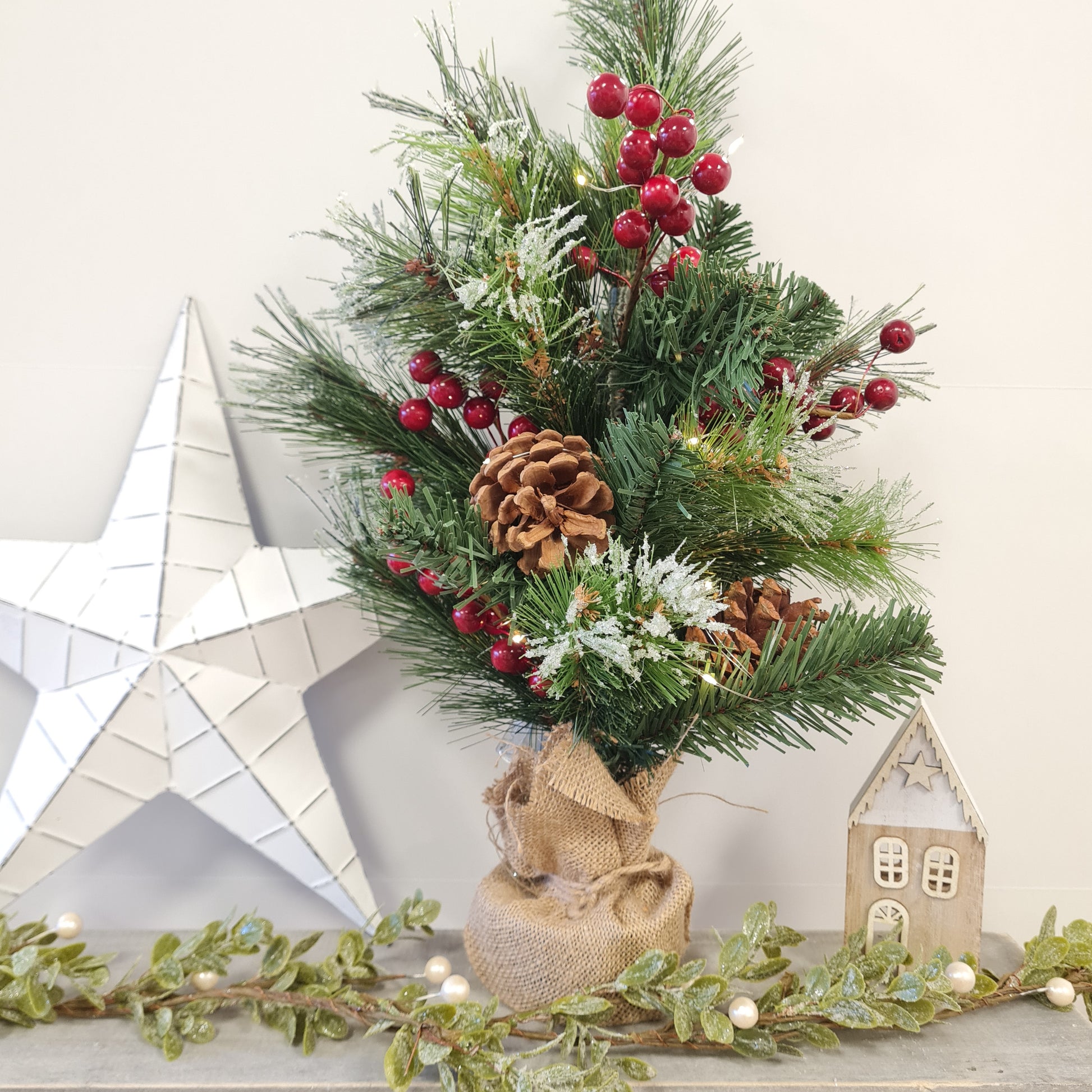A True Christmas Tree With Berries and Pinecones With A Snowy Finish. A Perfect Tree For Any Desk Or Shelf