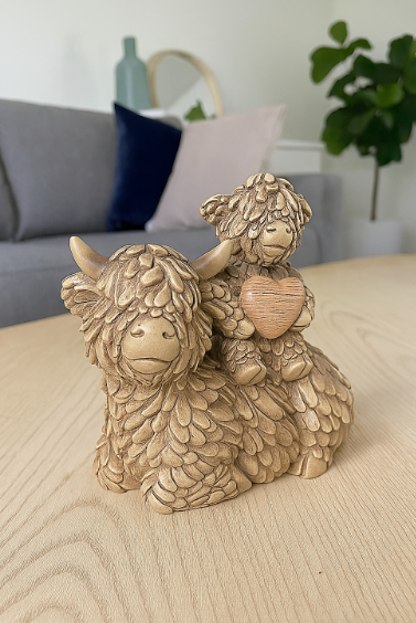 Mum & Baby Highland Cow with heart