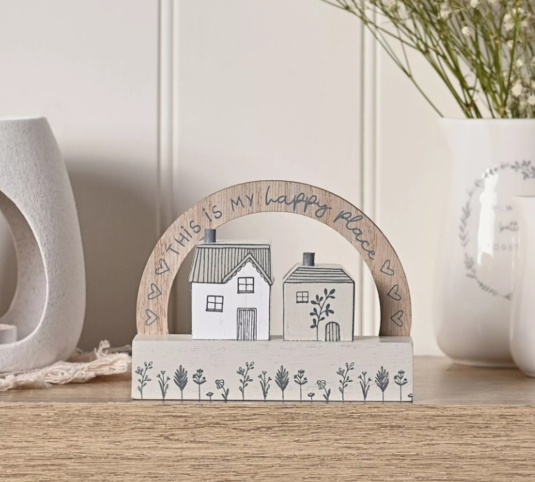 Crafted from MDF, the loving design presents two houses and emotive wording above. The wording reads, ‘THIS IS MY happy place.’