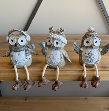 A festive themed assortment of sitting owl decorations each with their own style and glittery touch