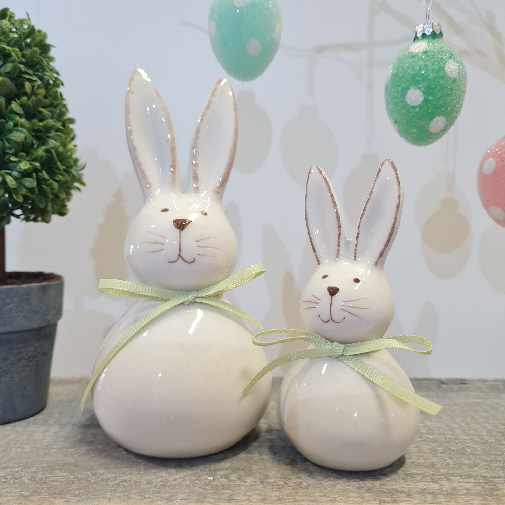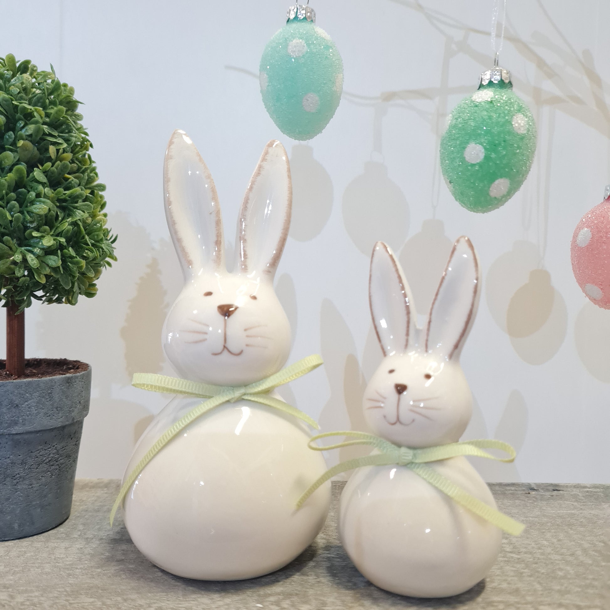 Poppy & Jessica, Ceramic Green Bow Rabbit, 2 sizes