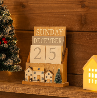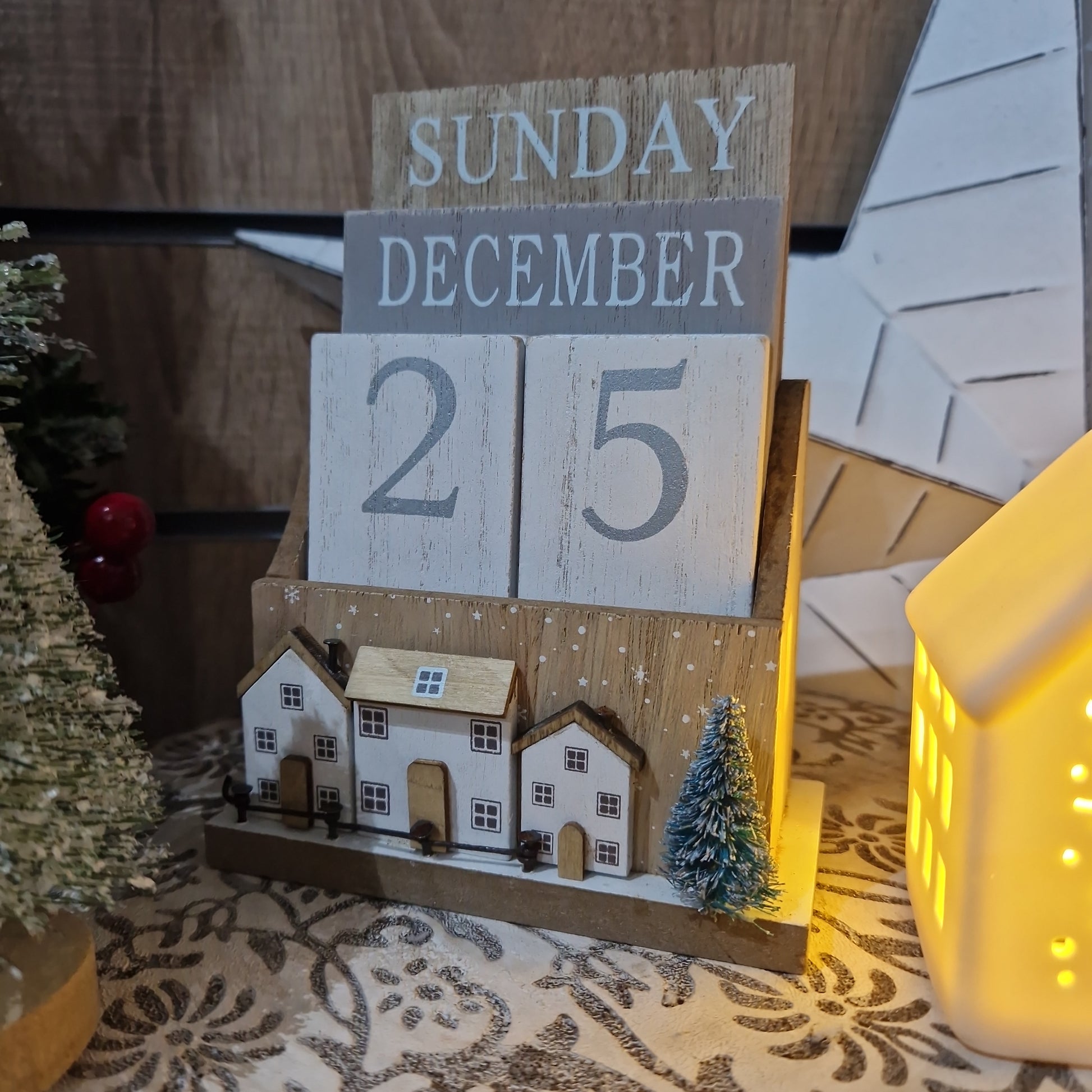 Perfect for bringing a Scandi inspired touch to your home at Christmas time, a rustic wooden count down calendar with a wintered village display